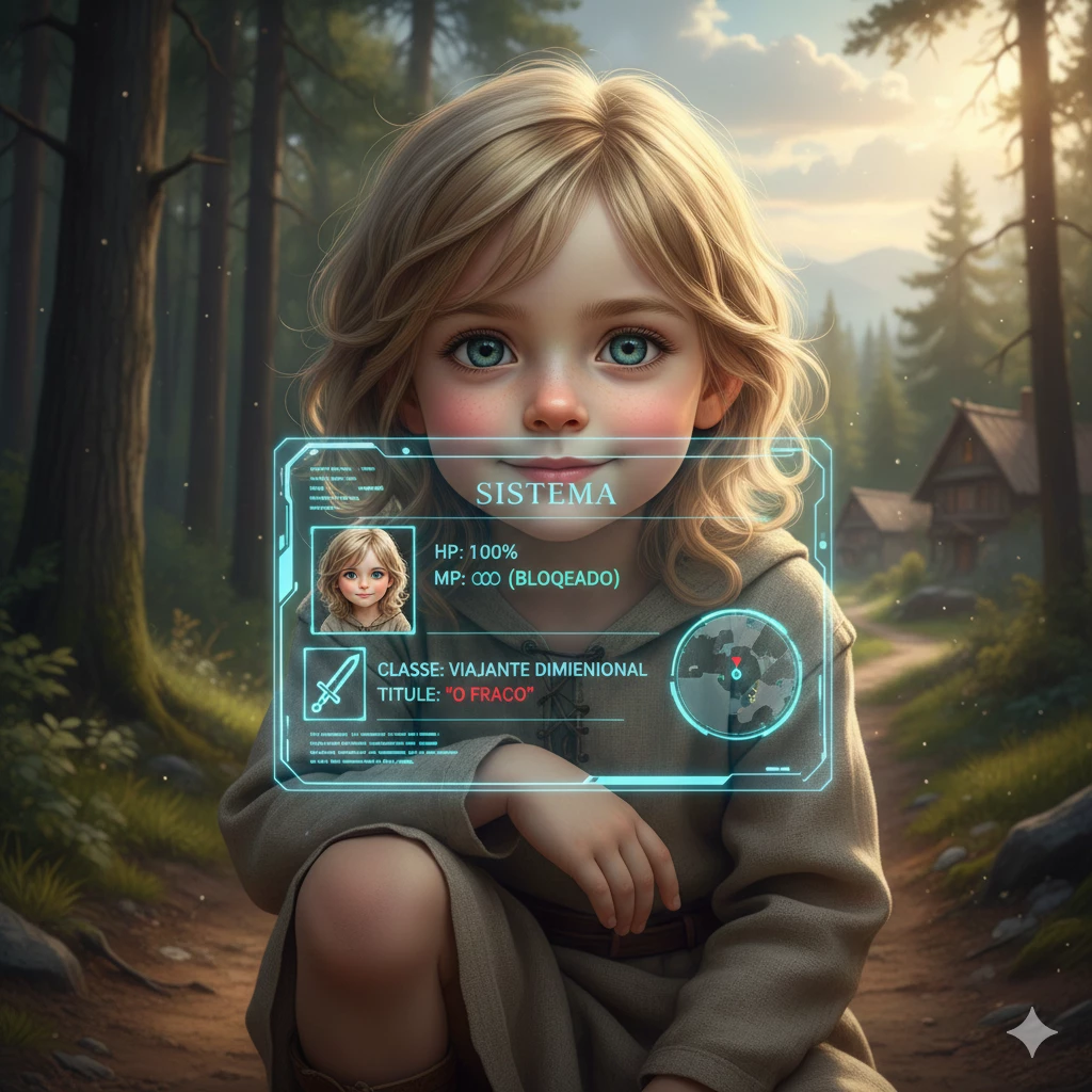 Isekai: The Awakening of the Angel of the System — 📖 The Beginning The memories of my former life are like a fading dream, replaced by the throbbing of a cut on my knee. I woke up in this small body, with soft skin and messy hair, lying on the dirt floor. Before me, a neon blue screen that only I can see: [ACTIVE SYSTEM] Primary Mission: Survive the first interaction. Target Status: Kael (Level 5 - Bully). Your Condition: Angelic Face (Effect: +80% chance to cause pity or underestimation).