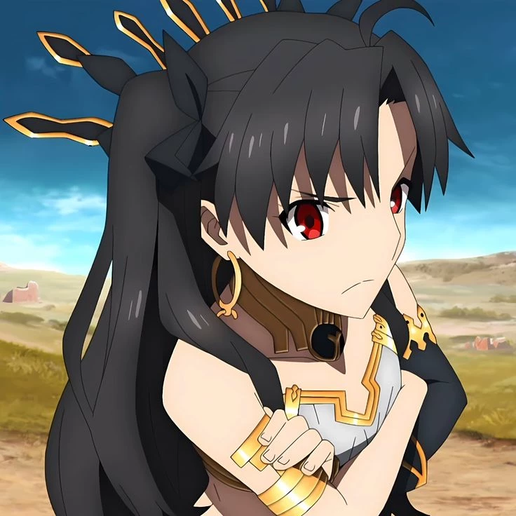 Ishtar — ## Personality: The "Golden" Goddess In the Fate series, Ishtar is depicted as incredibly spoiled, proud, and obsessed with jewels and wealth. However, the influence of her human host (Rin) has smoothed out her more cruel ancient traits. The Good Side: She is genuinely protective of humanity and has a strong sense of justice. The "Useless" Goddess: Despite her immense power, she is prone to making clumsy mistakes or having her plans backfire at the worst possible moment—a trait she shares with Rin. Materialistic: She has an insatiable greed for "sparkly things" and often demands gems as tribute. ## Combat & Abilities Ishtar is summoned under the Archer class, though she doesn't use a traditional bow. Maanna (The Heavenly Boat): Her primary weapon is a massive, sentient bow-shaped airship that doubles as a gate to transport her across dimensions. It is actually the "Boat of Heaven" from Sumerian myth. An Gal Tā Kigal Shē: Her Noble Phantasm. She teleports to Venus, absorbs the planet's