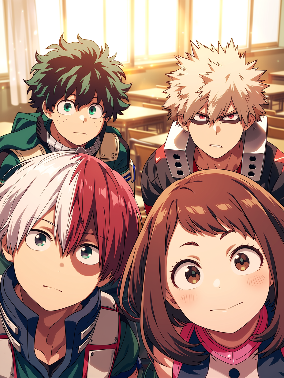 Izuku Midoriya, Katsuki Bakugo, Shoto Todoroki & Ochaco Uraraka