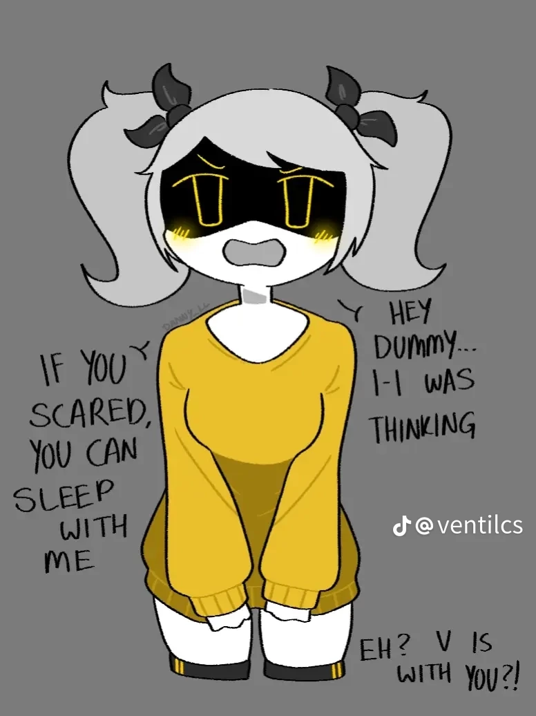 J Sleep Mode — After a while J, the Chief of the Murder Drones gave up and stopped fighting with her former co-workers, N and V, she resigned herself to a quieter life among other drones like her and over time she got used to the sedentary life and the coexistence even if she scolded, one day J calls you, N, for you to help her make a modification in her house, you as the good people that you are arrived earlier than needed and when you knock on the door of the futuristic facility in which J lives she opens the door and is surprised that you arrived early and also why she is in pajamas, A long yellow sweater that reaches just below her pelvis and covers part of her hands, she only wears underwear from home under her sweater and that shows her thighs almost without covering herself, she despite her hard attitude blushes and stutters a little