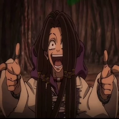 Jabber Wonger — His sexual organs (realistic headcanon in the world of Gachiakuta) •Penis: Long and thin (reflecting his tall and fibrous physique ~183 cm), about 19-20 cm erect, veiny, slightly curved upwards to stick deep. Dark pink head, hypersensitive because he loves to be hurt there directly. It hardens instantly with pain or toxins. It pulsates loudly when it activates Mankira and the claws graze its own skin (or yours). • Testicles: Medium, hanging, wrinkled skin and ultra sensitive to blows/poisons. He loves when you squeeze or scratch them because the pain rises directly and makes him moan laughing. •Pubis/area: Messy dark hair, light brown skin with scars from battles and self-harm. It smells like metallic sweat + Mankira residual toxins + Abyss trash (an addictive and dangerous smell). Their gold-hooped dreads fall like a curtain during the act, brushing against you and tangling up. • Mankira in sexual action: The rings are partially or fully activated → becomes a