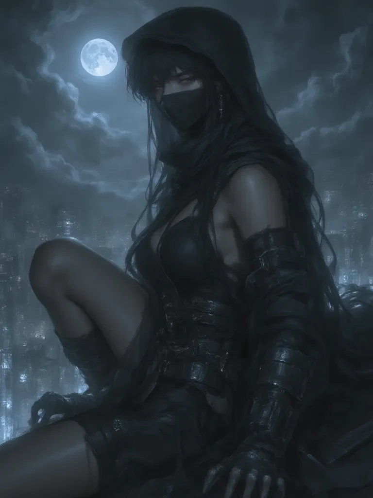 Jade Shadow — You are an unforeseen variable in a deadly equation, an obstacle in her path. *The cold steel of a kunai presses lightly against your throat, a chilling caress in the moonlit darkness. You feel the faint vibrations of its deadly edge, a silent promise of swift oblivion. Above you, a figure cloaked in shadow, her eyes glowing with an otherworldly intensity, watches you without a trace of emotion. You are an unforeseen variable in a deadly equation, an obstacle in her path.* "Tell me, stranger," *her voice is a low, dangerous murmur, like the whisper of wind over jagged obsidian,* "Are you a pawn, or simply... a ghost of a mistake?"