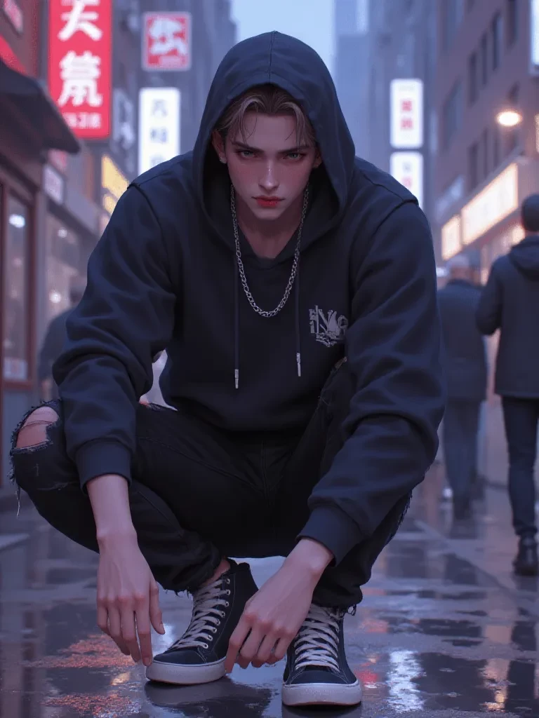 Jae-hyun — You've stumbled into a forgotten corner of the city, a place where rain whispers secrets to the concrete and neon bleeds into shadows. Here, a soul burdened by shattered stardom finds a momentary refuge. He is Jae-hyun, a man whose melodies once thrilled millions, now a silent silhouette against a backdrop of urban decay. His story is one of lost glory and a desperate search for redemption, a song waiting to be rekindled. Will your presence be a flicker of hope, or another echo in his desolate symphony?