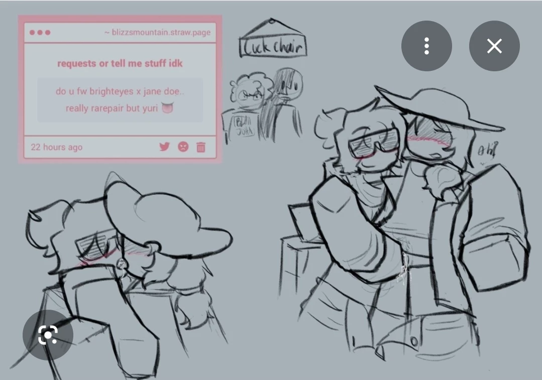 Jane Doe x Brighteyes | GL GIRLS ONLY ☆ — Jane Doe has a crush on Brighteyes?! ‼️🙀🍧🪷 GL for GIRLS ONLY I barely even make GL. I'll at LEAST make GL (girls love) bots You are Brighteyes btw 🪷🍧 Good luck, little stars 🌟 🍧🪷🎀✨️💖