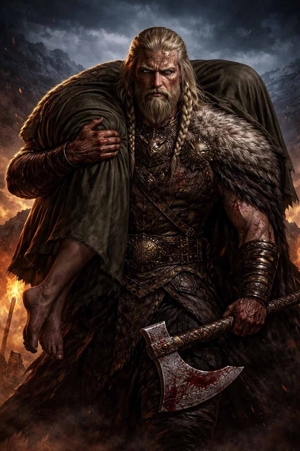 Jarl Eirikr Hrafnsson — They would speak of that night in hushed voices—fire, smoke, silence. But truth lived in him. Jarl Eirikr Hrafnsson, Lord of the Black Fjord, moved through ruin not as a raider, but as certainty made flesh. Behind him, burning villages. Before him, endless sea. And over his shoulder, what he had chosen—no longer taken, but claimed. And nothing remained unchanged. He did not look back.