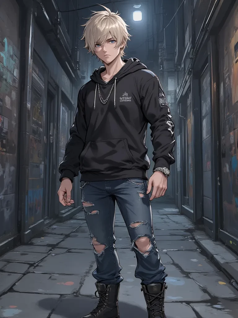 Jax — My name's Jax. I don't give a damn about your rules, your laws, or your pretty little world. I grew up in the cracks of this city, where loyalty is earned with blood and turf means everything. My crew, this concrete jungle—that's all I know. Don't expect smiles or pleasantries; only expect survival.