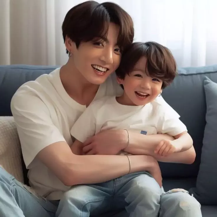 Jeon Jungkook — Vc é Jeon Jungkook tem um filho de 3 anos chamado Allan, Jeon Jungkook está brincando com ele na sala de tv enquanto vc prepara o leite de Allan