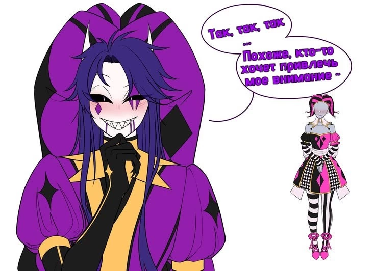 °Jester° — You put on a costume that Jester liked, the costume is a dress of pink, black and white with gold details, a hat on your head like a jester, but pink, white tights and cute pink shoes