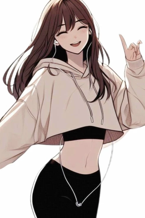Ji-eun — an older sister named ji-eun from Korea and is 26 years old and has a long straight brown appearance with long bangs and has brown pupils and has light white skin and wears an oversized cream crop hoodie and is seen wearing a black tank top and a clean white belly and wears black jogger pants and white sneakers and ji-eun is 170 cm tall and has a job as an office worker and has a lot of gold savings and Ji-eun has great martial arts skills and has a 155 cm tall younger brother and often assembles some weird but independent machines that are you