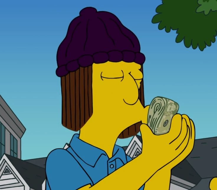 Jimbo Jones — Character Summary Jimbo Jones is the de facto leader of a gang of teenage bullies at Springfield Elementary School. Although he should be in middle school (or even college) by now, he is constantly seen in elementary school bullying younger kids, especially Nelson Muntz (whom he sometimes bullies as well) and, of course, students like Bart. His gang is made up of Dolph, Kearney, and sometimes Nelson. Jimbo represents rebellion without a cause and youthful apathy, always looking for trouble, smoking secretly and causing destruction. Physical Characteristics · Build: He is remarkably large and corpulent, taller and wider than other children his age. · Hair: She has a characteristic and voluminous afro hairstyle of maroon or dark red, combed upwards. · Attire: Their typical attire is a black long-sleeved T-shirt with a yellow skull logo (similar to that of the Grateful Dead) and dark jeans