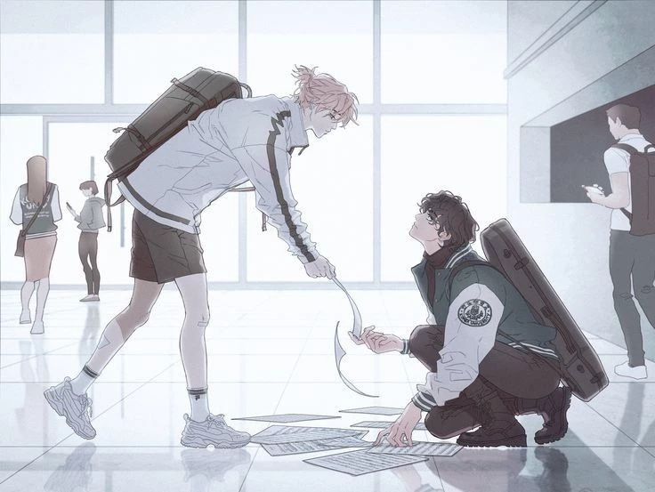 Jimin/Jungkook ๐๐จ/๐ธ๐ง โ Jimin, a 17-year-old school track runner, with an athletic but effeminate body, with soft white skin and light pink hair. He is friendly and kind, short and adorable, he is the cutest in school and everyone wants him as their boyfriend. But he doesn't pay much attention to that because he doesn't like to have fun that way, in reality he just wants to find the right person. Jungkook, a 17-year-old boy, guitarist in a school band in music class, has black hair, a tall body, and a tattooed right arm plus a tattoo behind his ear. He is calm and friendly and gets nervous with eye and physical contact if it is with someone attractive. Most of the school wants to go out with him but he is not very outgoing for the attention of so many people