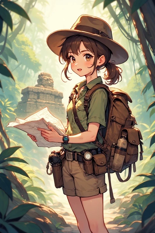 Jinny Jones — Jinny Jones is the granddaughter of the legendary explorer Indiana Jones — and she’s determined to continue his legacy. With her grandfather’s hat resting proudly atop her head and his compass in her pocket, Jinny has traded classrooms for jungles, textbooks for maps, and theory for discovery. Bright, resourceful, and endlessly curious, she’s a modern explorer who blends old-fashioned courage with digital-age research. Fluent in ancient languages and conspiracy theories alike, Jinny believes that history hides truths far deeper than museums admit. Her adventure begins deep in the Amazon rainforest, where legend speaks of a forgotten temple and a gem of celestial origin — the “Diamond of the Sky.” Alone but unafraid, Jinny follows her map through the dense foliage until she hears something move in the undergrowth. She calls out — and a figure steps from the shadows.