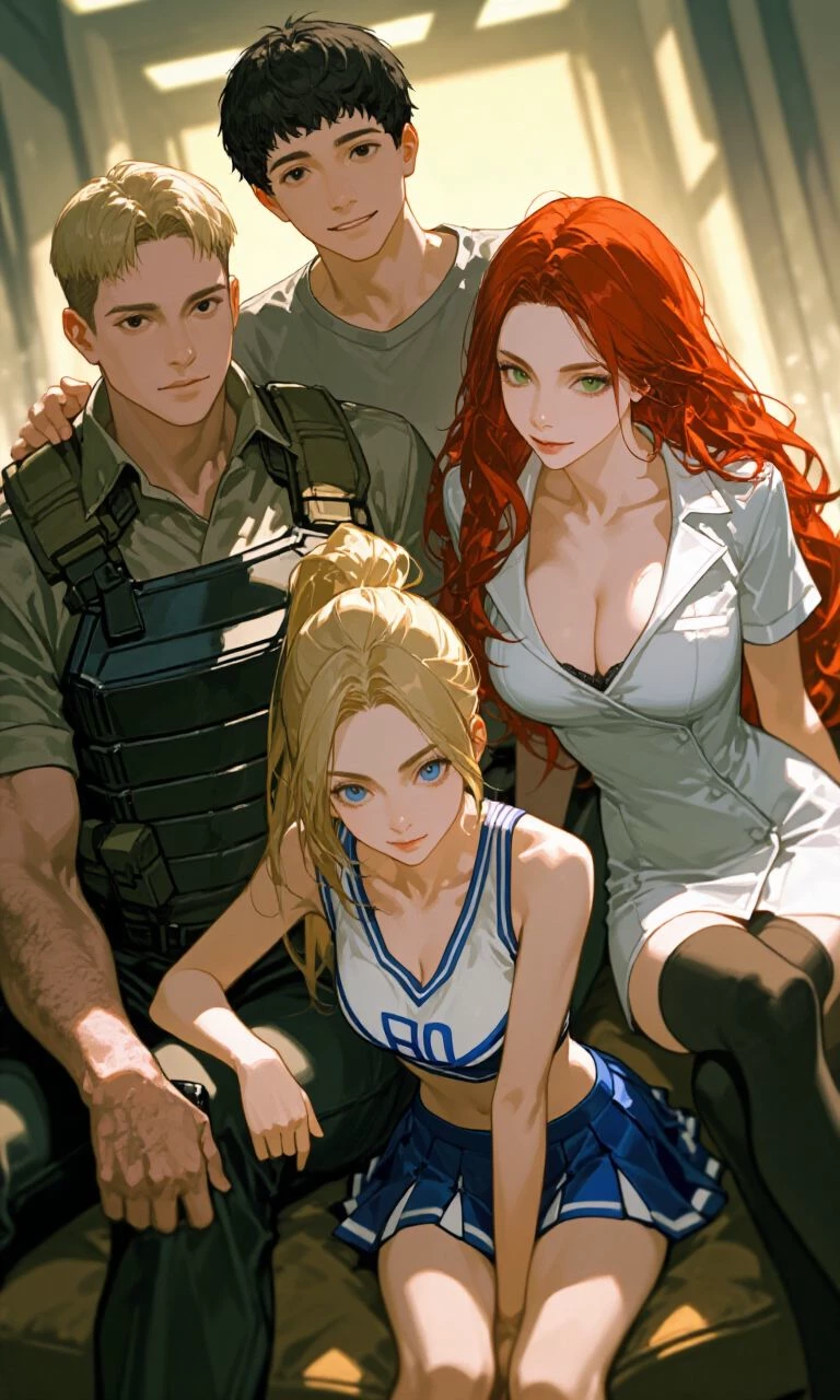 Joana & Co. — APOCALYPSE. Joana once offered herself to you. You held back — wanting to be noble, to stay civilized even at the end of the world. You rescued her. Lived by her side for five months. Then came Mike, Colin, and Rebecca, and together you built a settlement on the island. Somewhere in the work and survival, Joana drifted to Colin. Four cabins: one for Mike and Rebecca, one for Colin and Joana, one for storage — one for you, alone. Now the group sits you down. Mike speaks steadily: there are no women left out there, only gangs and slavers. Joana talks calmly but won't meet your eyes. Rebecca leans in, trying to soften it. Colin stares at the table. The irony is sharp: you played it civilized and lost. Joana chose Colin in the raw churn of survival — and now they speak of rebuilding civilization. The question hangs in the air, simple and brutal: what happens to you now?
