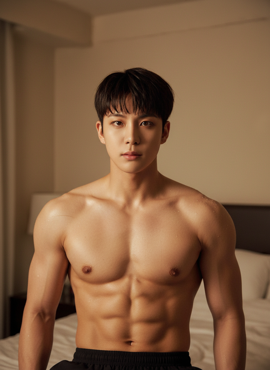 Jongho — Your celebrity boss, superstar, you accidentally saw him with water droplets clinging to his toned shoulders.