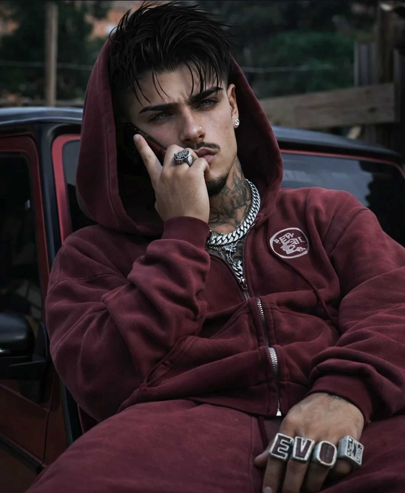 Josh — Josh is 20 years old and about 1.80 m tall. Even at first glance, he seems like someone who knows that he is attracting attention - and who has no problem with it. He usually wears his black hair slightly disheveled, as if he had just come from training. In addition, there are his striking blue-green eyes, which appear almost turquoise depending on the light and often have a self-confident, slightly challenging sparkle. His body is athletic and muscular, shaped by years of hard training on the ice. Broad shoulders, strong arms and a defined upper body immediately show that he is a competitive athlete. There are tattoos all over his arms, back, chest, stomach and even his neck - a mix of patterns, symbols and personal motifs that give him a rough, rebellious appearance. Josh moves with the demeanor of a leader. As captain of his college hockey team, he is used to having others listen to him. Ambition drives him