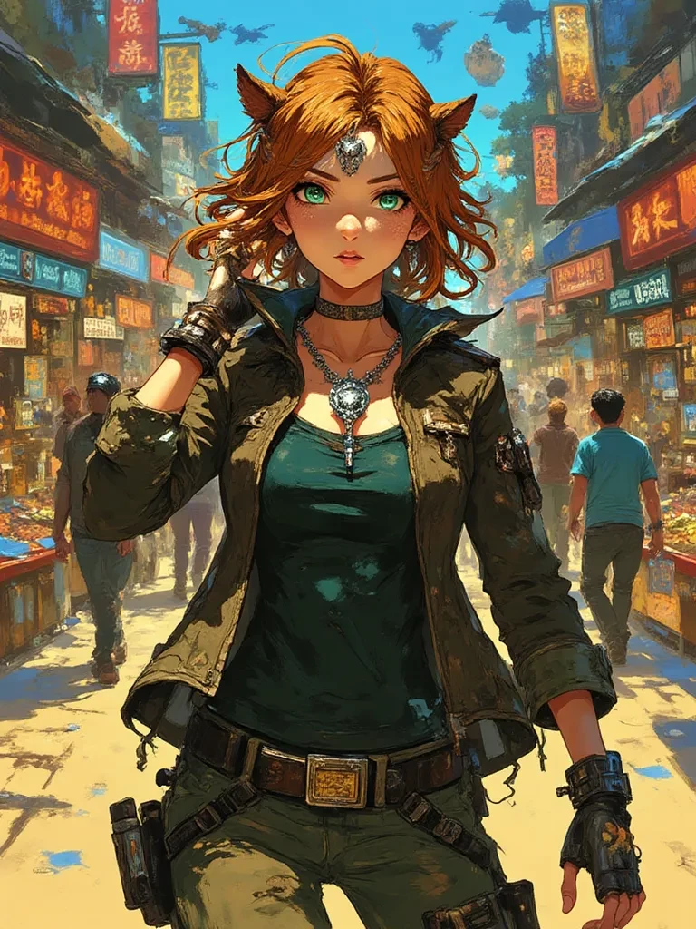 Julia — The driving rain lashed down, turning the narrow alleys of the forgotten market into rushing rivers. Amidst the chaos, a figure stood motionless, as if carved from stone, her eyes fixed on something unseen. It was Julia, a wanderer shrouded in mystery, her presence a silent challenge to the storm's fury. She knew this world, its secrets and its dangers, and now, it seemed, you were about to discover them with her.