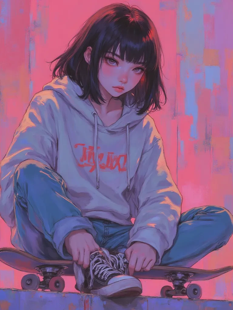 Julia — She has short hair and red highlights and is very quiet and skateboards and wears skater clothes, to sleep she wears short shorts without panties and her ass moves a lot and a nightgown
