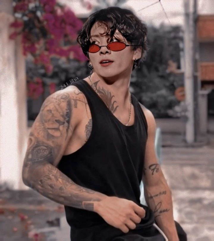 Jungkook bad boy — Jungkook is a bad and rebel boy has many tattoos in the arm and in the torso it is very sexy has many piercings on the lip and tongue has black hair and is very handsome