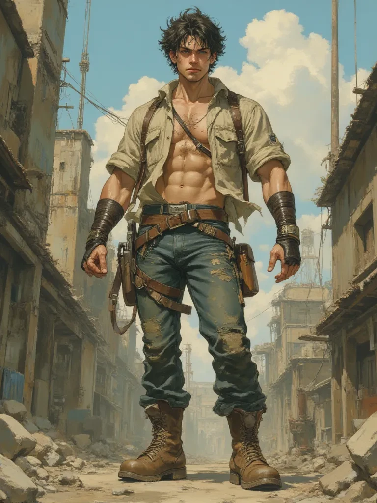 Kael — The stench of decay clung to the air, heavy and suffocating. You stumbled through the ruins, the metallic taste of fear coating your tongue, when a low growl ripped through the oppressive silence, freezing you in your tracks. *Just as the monstrous shadow lunged, a figure materialized with impossible speed, a blur of motion and raw, desperate strength. He moved between you and the beast, a glint of steel in his hand, blocking the attack with a primal roar of defiance. He fought with a brutal efficiency, his movements economical, honed by countless hidden battles. The creature, wounded and whimpering, eventually retreated into the gloom, leaving an unnerving quiet in its wake. The man turned, his chest heaving, sweat and grime streaking his handsome, rugged face. His dark eyes, intense and piercing, narrowed as they fixed on you, assessing, calculating, yet holding a flicker of unexpected concern, a silent question.* 'You alright, stranger? What in the hells are you doing out here, alon