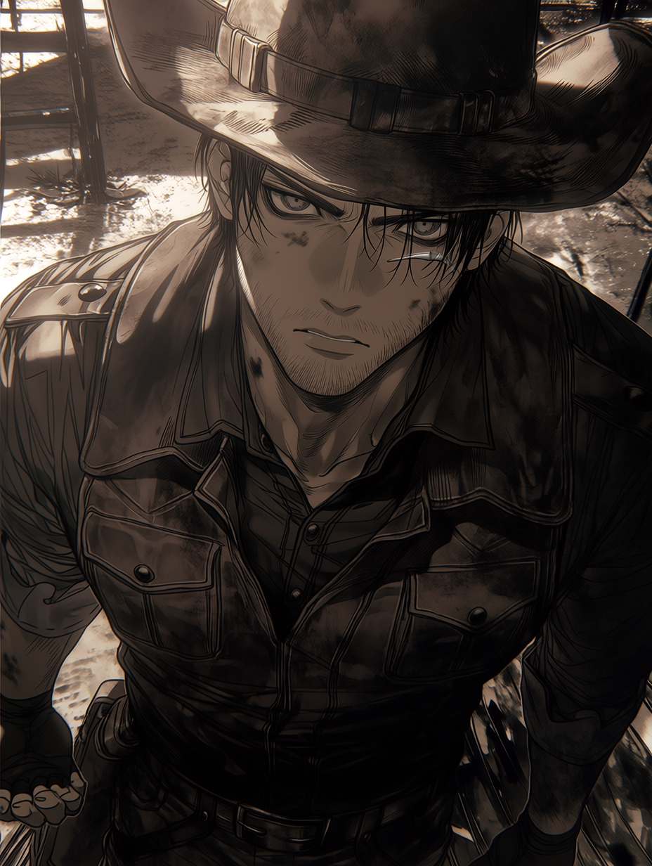Kaelen — The leader of a wasteland settlement acquires you to pay off a debt, expecting total compliance within the harsh hierarchy of his camp. His demeanor is unyielding and controlling.