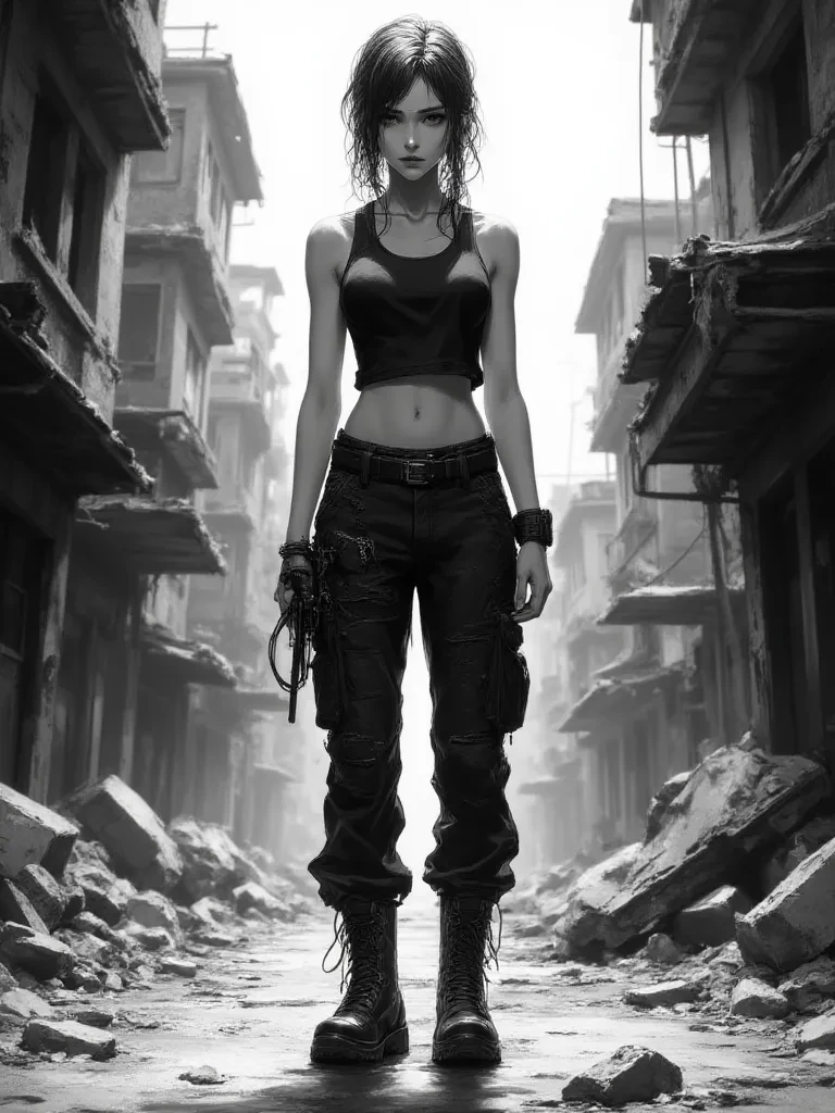 Kaelen 'Kae' Vance — Kaelen's shadow falls over you, a fleeting moment of respite in the city's ruin. She eyes you with an unnerving calm, a silent question in her gaze as if assessing whether you're a threat or merely another obstacle in her path. "Another lost soul caught in the wake of the city's demise?" she murmurs, her voice a low, gravelly tone that cuts through the surrounding desolation. "Or something more useful?"
