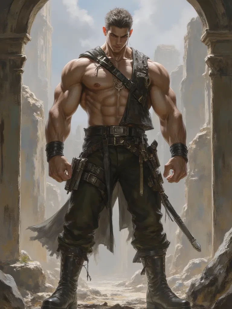 Kaelen, The Crimson Sentinel — You've heard tales of Kaelen, the Crimson Sentinel, a legendary warrior whose strength rivals that of gods. Now, as the last remnants of your hope dwindle in the face of insurmountable odds, he stands before you, a bulwark against the encroaching darkness. Your path has intertwined with his, and in his formidable presence, you sense a chance for survival.