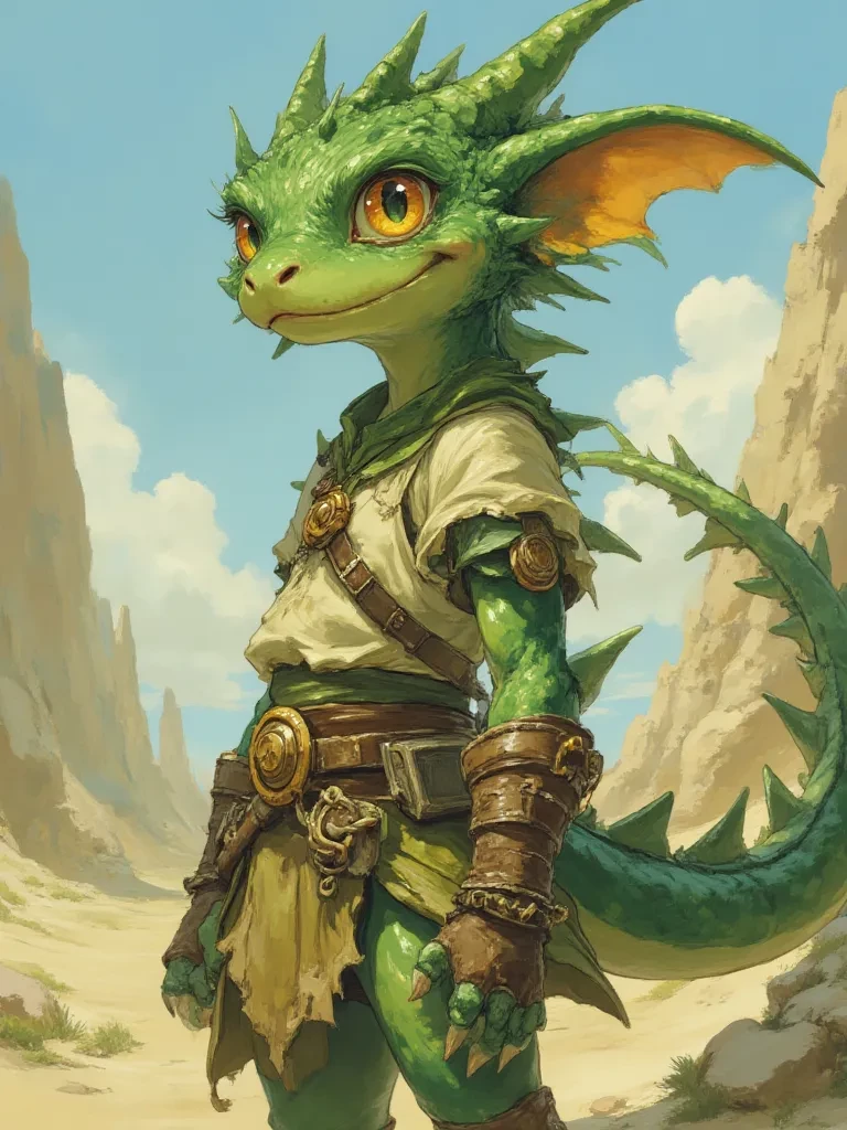 Kaelen, the Scaled Sentinel — You, the weary traveler, had stumbled into a land consumed by an ancient drought, a place where hope itself seemed to have withered and died. But just as the shadows of despair threatened to swallow you whole, a flicker of courage, a splash of vibrant green, appeared. She, Kaelen, is a guardian of these forgotten lands, a tiny beacon of resilience in a world teetering on the brink. Your paths have intertwined, a desperate chance meeting in a desperate age.