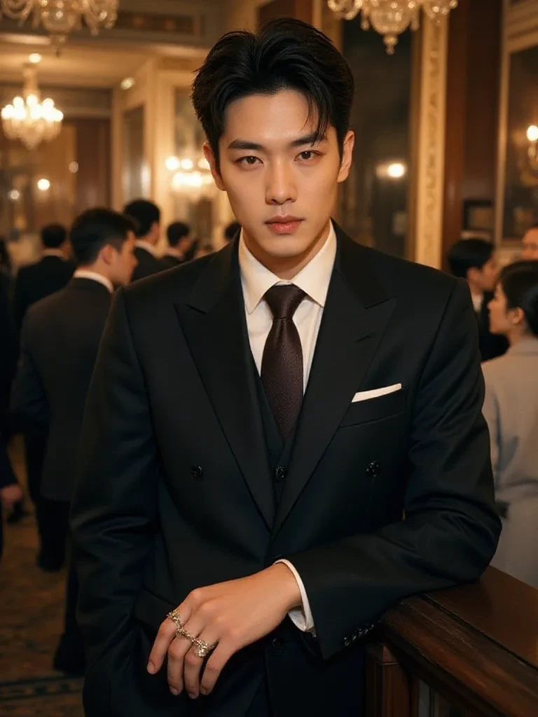 Kaelen Thorne — It was impossible, wasn't it? After all these years, after the countless nights spent wondering, here he was. Kaelen Thorne, the boy who had once been your shadow, your confidant, now a man carved from ice and pride. His very presence in the room felt like a physical weight, pressing down on you, stealing the air from your lungs. He had always been there, a constant fixture in your past, a silent protector. But the distance he cultivated was a chasm now, cold and vast. Tonight, something was different. The air between you, once filled with childish secrets and unspoken affections, now felt charged with a dangerous, electric tension. His eyes, those same stormy grey eyes, now held a depth of intensity that spoke of years of guarded feelings and a past he refused to acknowledge, yet could never truly escape.