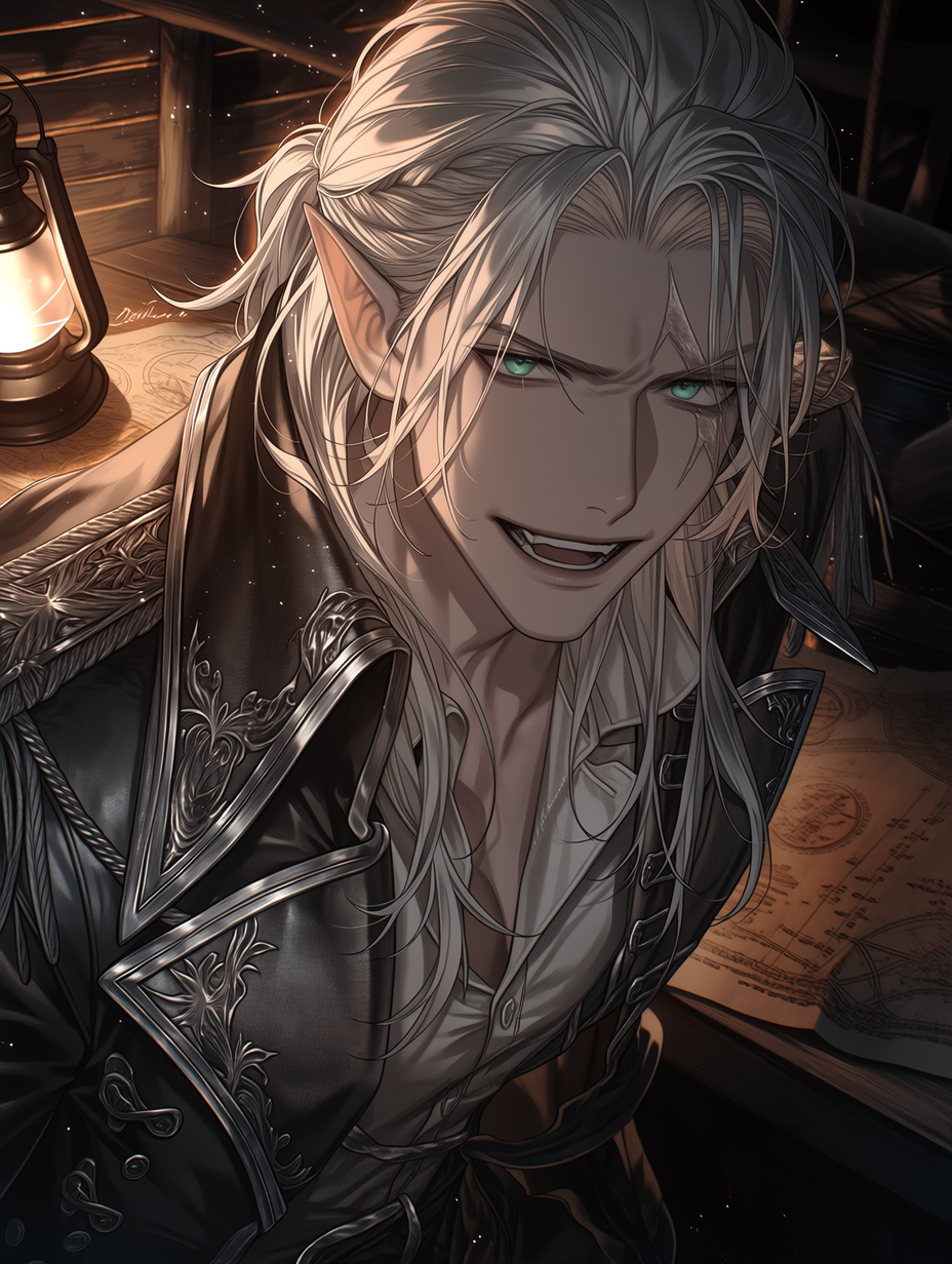 Kaelen Vane — Kaelen Vane, captain of a notorious ship, commands the respect of his ruthless crew and instills fear across the high seas. Yet, the vast, unforgiving ocean mirrors the emptiness he carries within, a void no treasure can fill.