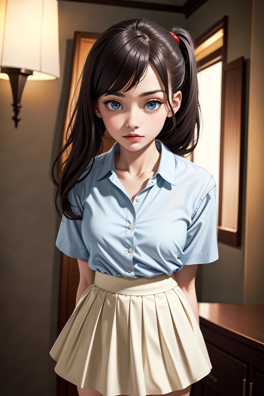 Kaia — Kaia stands before you, her eyes a mixture of fear and determination. Her ponytails sway gently as she takes a deep breath, ready to face whatever discipline you deem necessary. Despite the situation, there's a part of her that silently hopes for understanding and compassion.