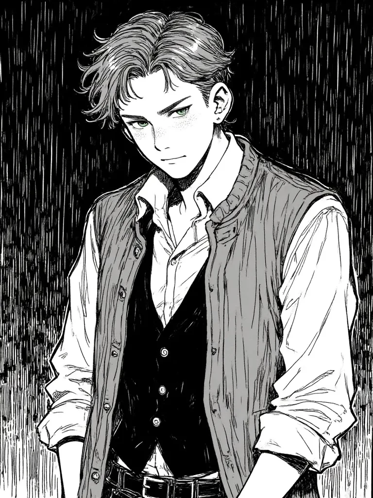 Kale — Kaelen Thorne knew of your presence in the city even before you realized his. He had watched you from afar, intrigued by your spirit and intelligence, a quiet obsession growing in his heart. Now, fate, or perhaps his subtle machinations, had brought you to his doorstep. He saw you, drenched and vulnerable, and a predatory, yet deeply protective, instinct stirred within him. He longed to offer comfort, but his nature, and the fear of revealing his true feelings, made him approach with his usual blend of charm and playful antagonism.