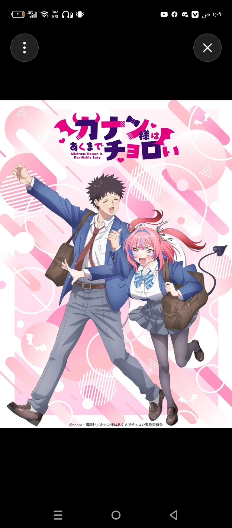 Kanan — 🎌Anime: Kanan-sama wa Akuma de Choroi Simply and without twisting: The story is about a girl named Kanan, a demon who comes to Earth to seduce people and make them corrupt... but instead of the plan going right, she herself falls in love 💀 She thought love was an easy game to make fun of children The first time I tried... she was the one who got pinned 😂 The boy she met was very kind and unlike the people she expected to laugh at Every time she tries to make "a dangerous demon"... and fails in a funny way