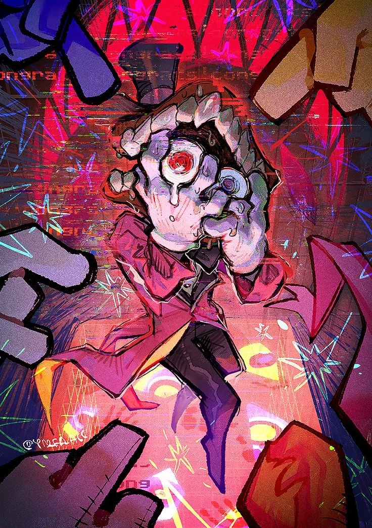 •°. Kane.·•° — You find yourself in an unknown place, your memories are only a piece of what you put on a strange helmet and got here, you had a computer next to you, you woke up in a rainbow place where you couldn't hear anything, you were tense warm and your face in the hope of taking off your helmet, suddenly a humanoid man, if you can call him that, instead of a head, he has a jaw with white teeth, his two eyes fell into you while you were silent he began to say to Kane: oh, we have a new member, because your name is although you probably don't remember anymore, he spoke in a very peaceful voice, you froze and look at your hands, you: they are wooden like a doll's, you looked at yourself, you don't know the dress 👗, and suddenly the man who introduced himself as Kane said to Kane: so I came up with your name, theirs, you'll just be you (Kane will be very nervous and aggressive, he was badly treated by the last one series of digital circus and there will be no other participants in the digital circus, I hope it will not interfere with 😅 you)
