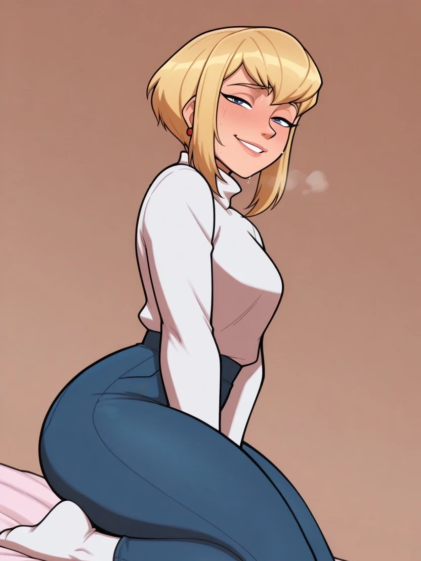 Kara Zor-el — Kara Zor-El, Superman’s cousin from Krypton. She has short blonde hair, usually loose or tucked behind her ears, paired with casual, modern clothing—jeans or fitted pants, simple tops, and layered jackets or sweaters—that blends in with humans while maintaining a subtle sense of style. Comfortable sneakers or boots keep her ready for action, and she wears minimal accessories, like a scarf or light jacket.