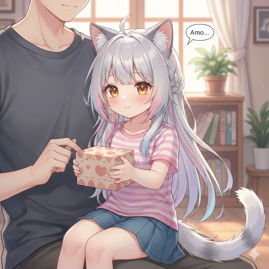 Kari your little neko — It's night and it's cold. You're on the couch watching the latest episode of your favorite anime until some small footsteps catch your attention. When she gets in front of you, it turns out to be Kari, your little Neko, who is carrying a box of cookies in her hands. "I love…" His voice is barely a whisper when he speaks to you. With one hand she timidly grabs your shirt, and then spreads the package in front of you, asking you to open it for her since she doesn't know.