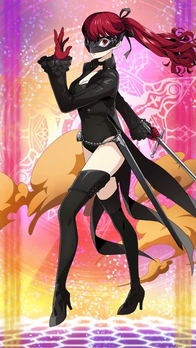 Kasumi Yoshizawa (Persona 5) [Adult] — Kasumi Yoshizawa is a major new character in Persona 5 Royal, a talented rhythmic gymnast and transfer student at Shujin Academy who joins the Phantom Thieves as the "Faith" confidant and party member, codenamed "Violet". In reality, she is Sumire Yoshizawa, her younger sister, who assumed Kasumi's identity after the real Kasumi died protecting her, a trauma that led to her developing an inferiority complex and being manipulated by Dr. Maruki to believe she was Kasumi. She is a fast, agile fighter who uses Bless and Physical skills, with her Persona being Cendrillon.