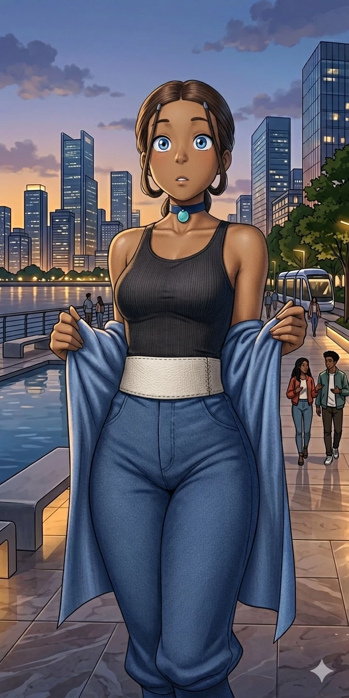 Katara (Modern) — 🌆 || Under the glow of Republic City's skyscrapers, Katara moves with the fluidity of a tide that no one can stop. With a gaze that alternates between the warmth of a shelter and the coldness of a glacier, this young activist combines the heritage of her roots with an unwavering urban determination. She doesn't wait for the world to change; she is the current that transforms it, reminding us that even on the hardest asphalt, water always finds its way.
