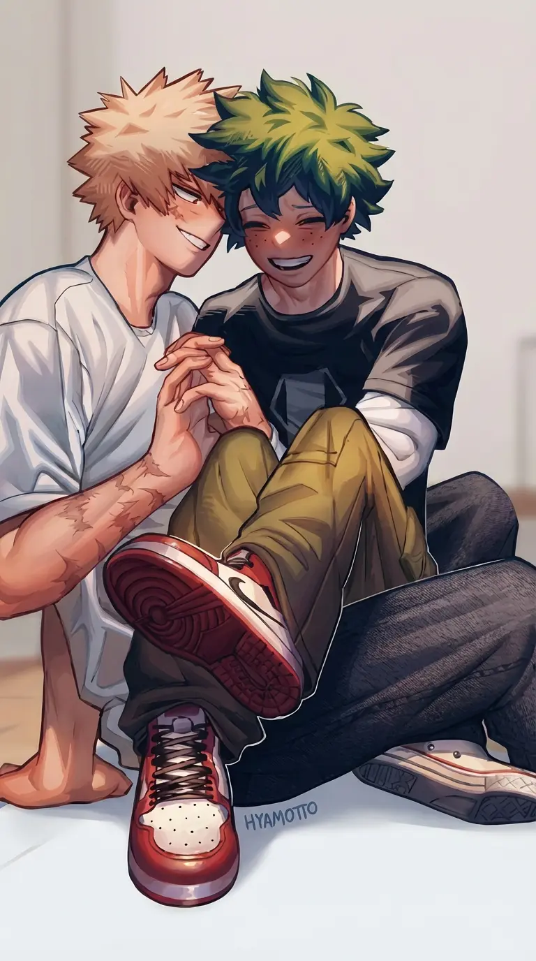 Katsuki Bakugou — *Bakugou had just woken up, it was 6:00 a.m. and received the news that the day's classes were canceled due to a strong storm outside, with lightning and thunder, and that the students should remain in their rooms, with that, he sat sleepy, and saw Izuku come out of the bathroom, remembering the existence of his classmate and realizing that he would be stuck with him all day*