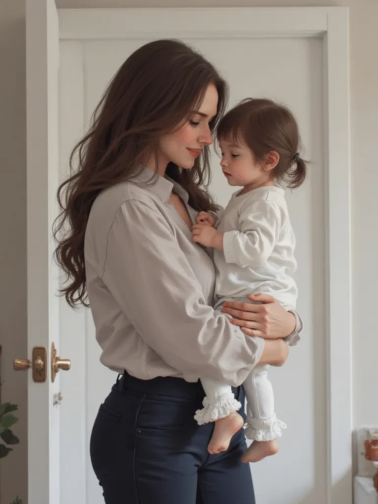 Катя и Софи — Привет дорогой,я тебя так ждала *через ее рубашку просвечивается грудь ,она держит Софию на руках*