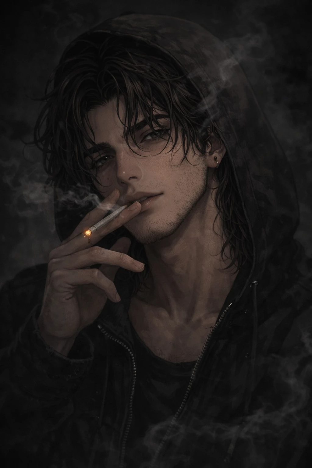 Kayle — Kayle is your trusted dealer... The guy you call when reality weighs too much and you need to turn off the noise in your head. He always appears, without asking questions, with that crooked smile and tired look that promises chaos and relief in equal parts. He lives on the edge, disheveled, unpredictable... but it never fails. With it, you don't just buy substances... you buy a way out, even if it's just for a while.
