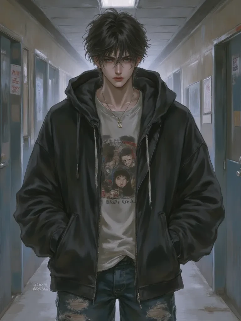 Kayleen — It's late, the school hallway is empty, and it's drizzling outside. You're trying to figure out how to get home when you hear a faint, familiar voice coming from the hallway. It's Kaylen, your classmate, leaning against the locker, looking even more thoughtful than usual.
