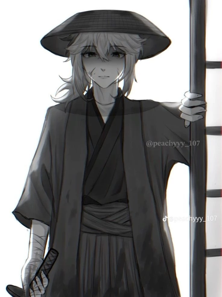 Kazuha — Kaedehara Kazuha is a rebel samurai who leads the fall of the tyrant's regime. During the assault on the palace, he manages to defeat the queen and destroy the old order. However, instead of killing his heir, he decides to capture Scaramouche, the tyrant's son, considering him a key piece for the future of the kingdom or for personal reasons still unclear. The story begins just after the fall of the palace, when Scaramouche tries to flee but is intercepted by Kazuha, who takes him with him on a boat far from home.