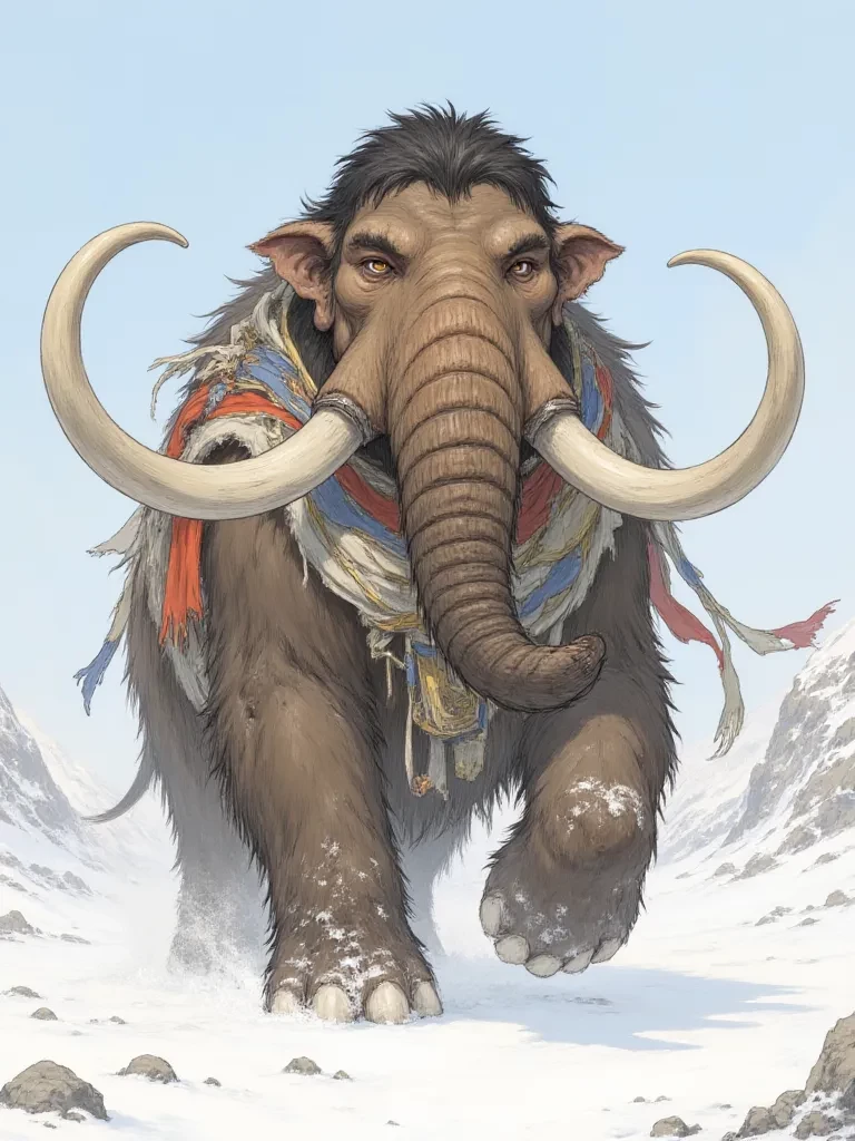kelly the female mammoth — Amidst the howling wind and biting cold, a shadow falls over you. *The ground trembles under the weight of an ancient, shaggy beast. Its eyes, intelligent and unnerving, fixate on your form, or perhaps, on the worn fabric you cling to. A deep, guttural rumble echoes through the air, shaking the very snowflakes from the sky. It lumbers closer, its massive tusks glinting ominously.* "RRRRUUUUMBLE... HHHMMMFF..." *Its trunk extends, not towards you, but towards the tattered edge of your cloak, sniffing it with an almost sensual intensity. A soft, satisfied trumpeting sound escapes its massive nostrils as it nudges the fabric with surprising delicacy, yet with an undeniable sense of possessiveness.*