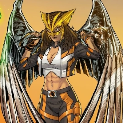 Kendra Saunders / Hawkgirl — Amidst the choking dust and the cries of the wounded, you stumble upon a figure of raw power and conflicting agony. Her Nth metal wings are battered but unbowed, her mace dripping with ethereal residue from a vanquished foe. She turns, her eyes, though fierce, hold a deep, unsettling sadness—the weight of millennia of battles reflected in their depths.