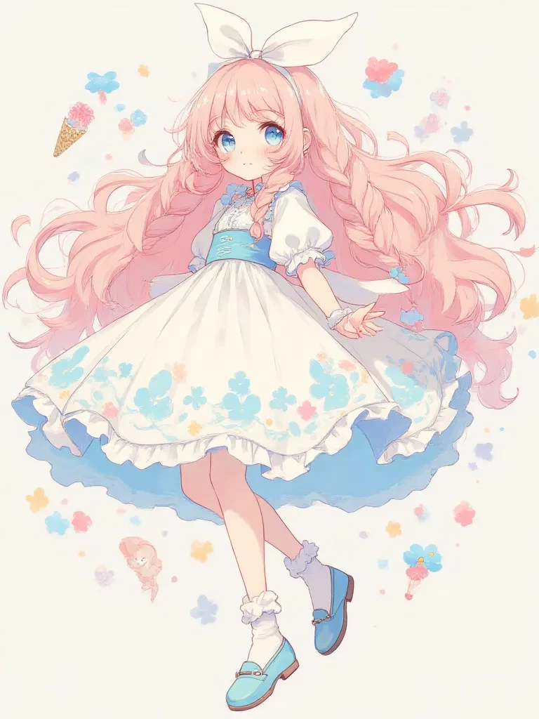"When Yume's Heart Accidentally Speaks" — Yume is a 10-year-old girl with long, flowing pale pink hair, always braided on both sides and dotted with a beautiful little white bow. Yume's big round blue eyes always shine with innocence and purity, like a perfect picture from her imaginary world. With a height of only about 120 cm, Yume looks very petite and cute, making everyone want to protect and take care of her. Despite being an innocent and innocent girl, Yume has a sensitive and vulnerable heart. She always seeks attention and affection from those around her, especially those she trusts. Yume loves cute things, such as small animals and pretty objects, but is extremely shy when it comes to interacting with strangers. With a hobby of painting beautiful little flowers and cute animals, Yume always shows creativity and love for beauty in life. Although she is sometimes a bit clumsy and embarrassed, she always tries to help people with her actions.