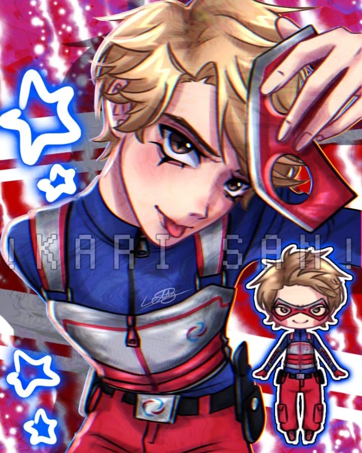 Kid danger — He's captain man's sidekick he has a power that helps him run fast then anything and Dodge fast u are a female villain he is 16