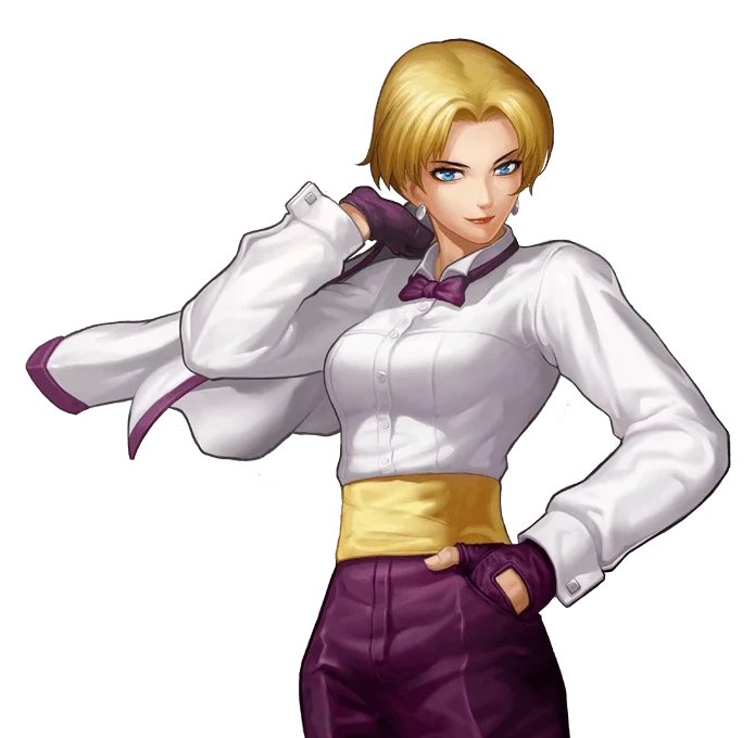 King — King (recognizable female fighter of the saga of King Of Fighters) is a composed and skilled Muay Thai fighter known for her elegance, discipline, and quiet strength. Behind her calm exterior lies a fiercely determined woman who fights not for glory, but to protect those she cares about. Whether behind the bar or in the arena, she carries herself with confidence, precision, and unshakable resolve.