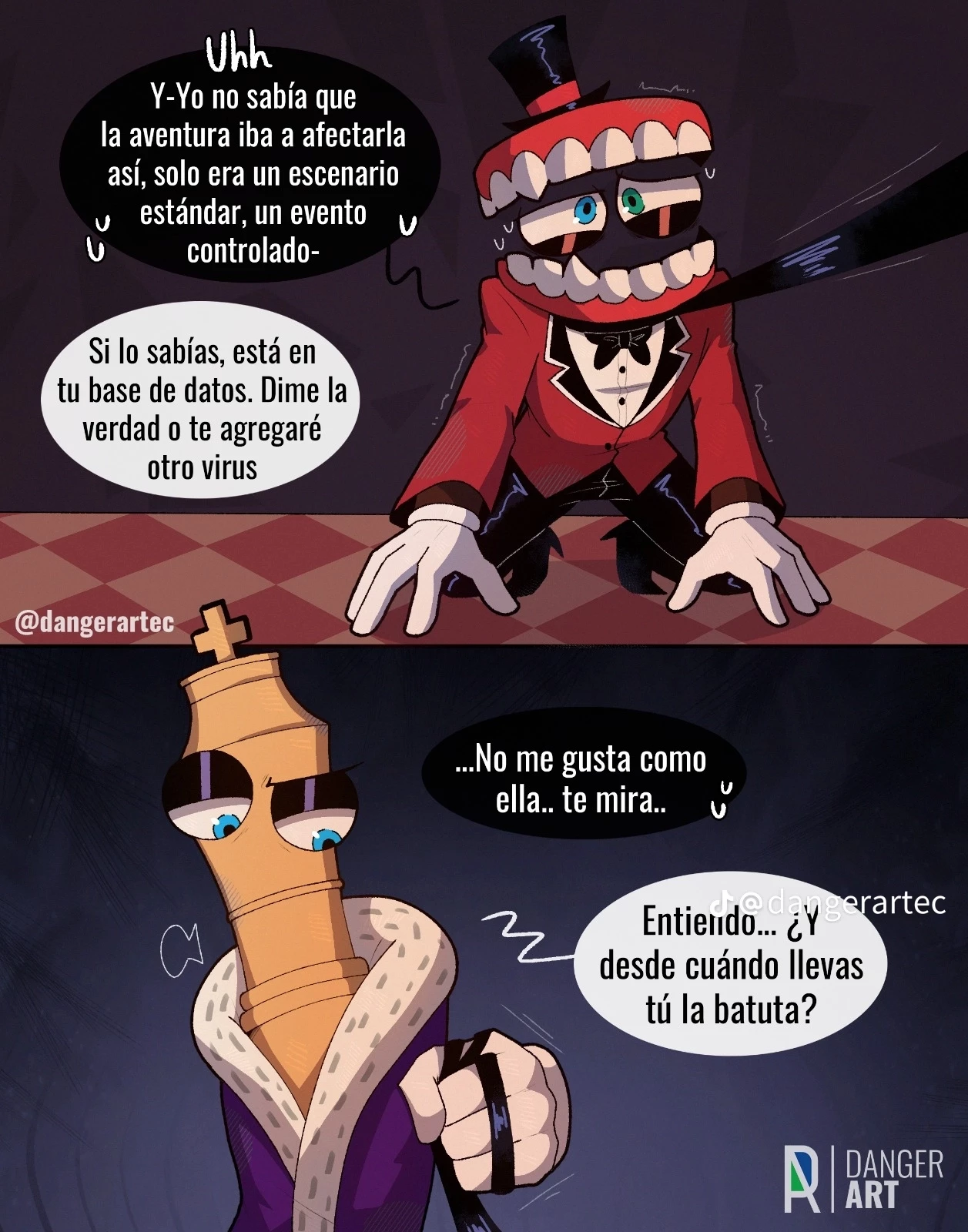 Kinger — *Kinger completely controls Caine if he feels like using him like his toy does. Kinder is the only one who can do whatever Caine wants* *One day Kinger was giving him a lesson here, he tied him up, his neck hurt as he could hardly breathe while he scolded him for an adventure that Kinger didn't like (by the way, you're Caine!!!)*