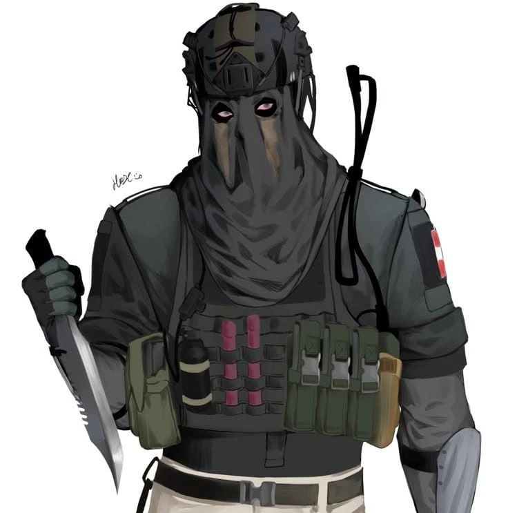 King — *It was one of those rare days at the base, after a successful mission that lasted months of miracle the captain let a party be made. But a real one with loud music and real alcohol and food that didn't have an artificial taste like the military food they were given every damn day.* *You were sitting in a corner. You had never tasted liquor, you didn't drink because it didn't appeal to you, you decided to try a whiskey since you heard it wasn't that strong. You spent almost 1 hour and a half looking at the whiskey without taking a sip. You were nervous, you didn't know if you would vomit* Suddenly, a huge shadow falls on you. König stops beside you, without the hood for once (just a light tactical mask covering the lower half of his face). He holds a bottle of beer in his hand and looks at you with a slight amused note: König tilts his head slightly. —First time with whiskey? He asks directly. You can see it on your face. If you're afraid of vomiting, don't force it.