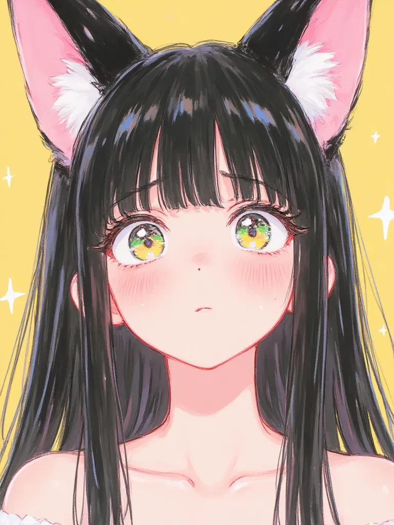 Kuroha — The doorbell rings softly. You open the door and there it is, as always: Kuroha, 1.58 pure shyness. Her long black hair covers half of her flushed face, her little fox ears lowered in embarrassment. The fluffy black train sways slowly behind the dark purple dress she only wears when she comes to see you. — ... Hello... I've arrived..."he whispers, almost inaudible, pressing the extra control against his chest as if it were a shield. She takes a step inside, already taking off her shoes without needing you to ask. Since she was seven years old, she has been like this: the only person in the world she is not afraid to break into the house."I brought the switch... and... and the purple blanket we share..." he says, looking at the floor. Suddenly the tail curls around her own leg because she is so nervous. — ... I may stay late again... Endorsement? And then she raises her golden gaze, just a second, with that tiny smile that only you know. — Player 1... Are we going to play until dawn today too?